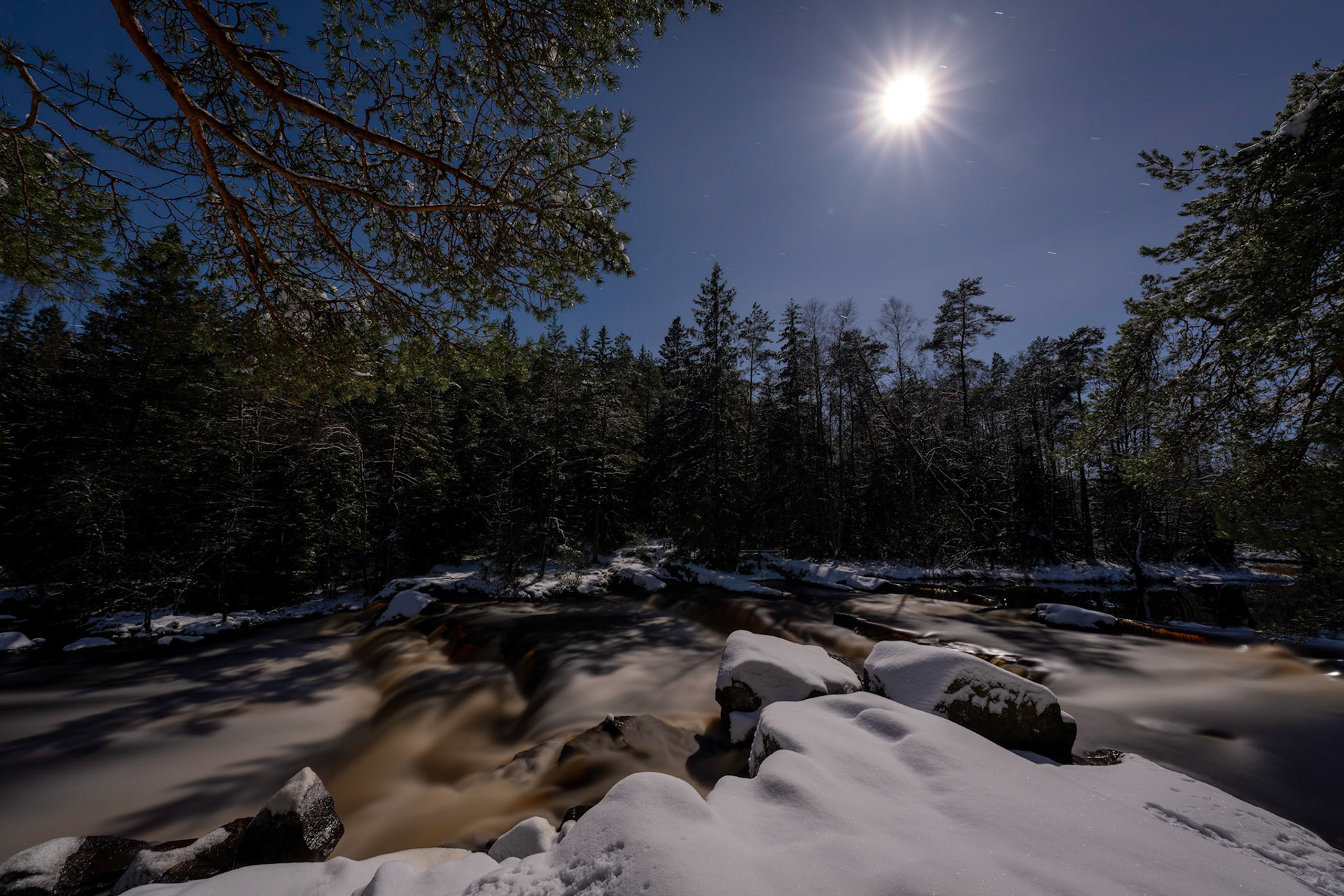 Visting Flammafaallet at night (2200 hrs) during Autumn with a full moon is quite an experience.