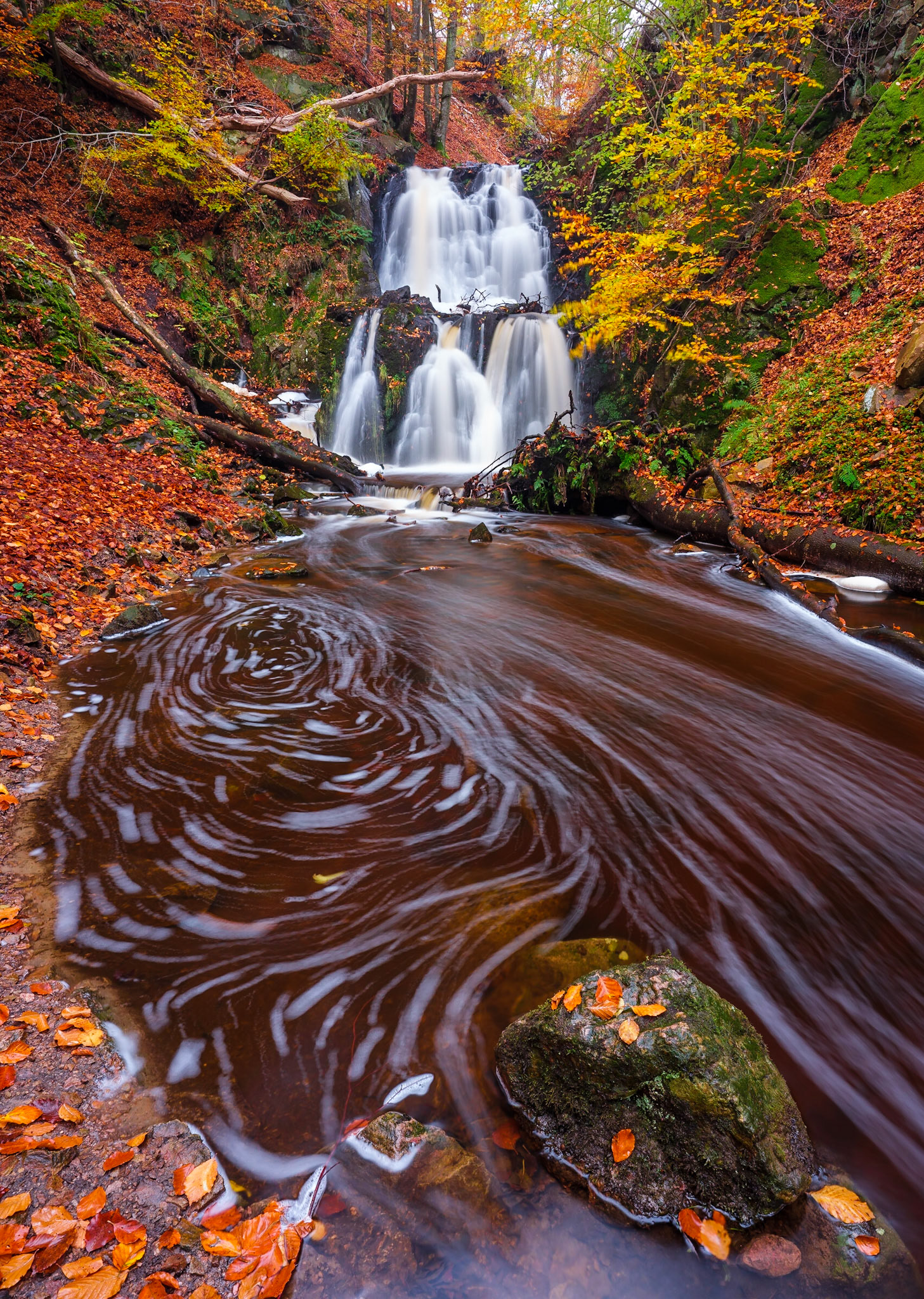 Autumn in Forsakar waterfall with a swirl